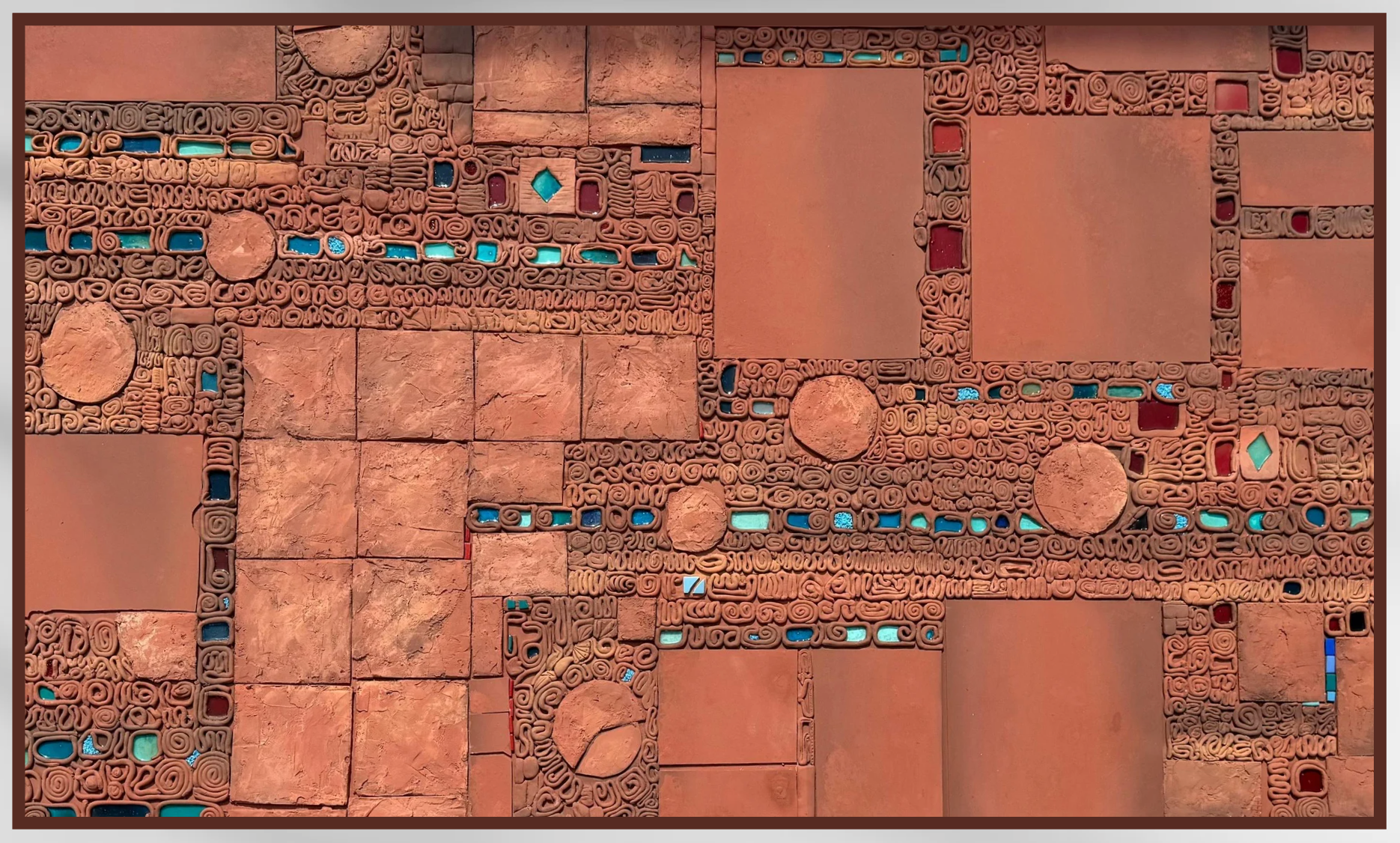 Earthlines is a handcrafted terracotta table that weaves together tradition, tactility, and modern design. Its surface is a mosaic of textured clay tilessome pressed with abstract motifs, others embedded with vibrant pieces of glazed ceramic and glass. The composition evokes an ancient urban map or script, where every line and shape feels both accidental and intentional, echoing humanity’s relationship with the earth and its stories. Both functional and sculptural, the table serves as a statement piece, grounding any space in warmth, craft, and cultural memory.