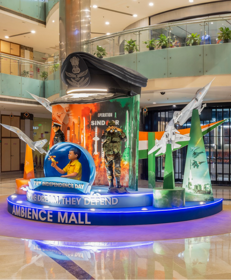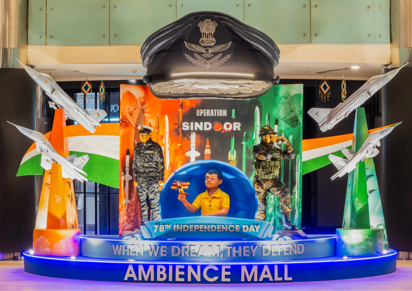 A grounded salute for those who guard our skies and borders, while we dream - an ode to the heroes of our nation. We proudly present an installation that salutes the unmatched courage, and unwavering commitment of the Indian Air Force, the Indian Army, and the Indian Navy, our silent sentinels, our guardians of peace, and our pride. It is a reflection of the farsighted planning, precision, and preparedness that defines our armed forces, those who respond to threats and foresee them long before they emerge.