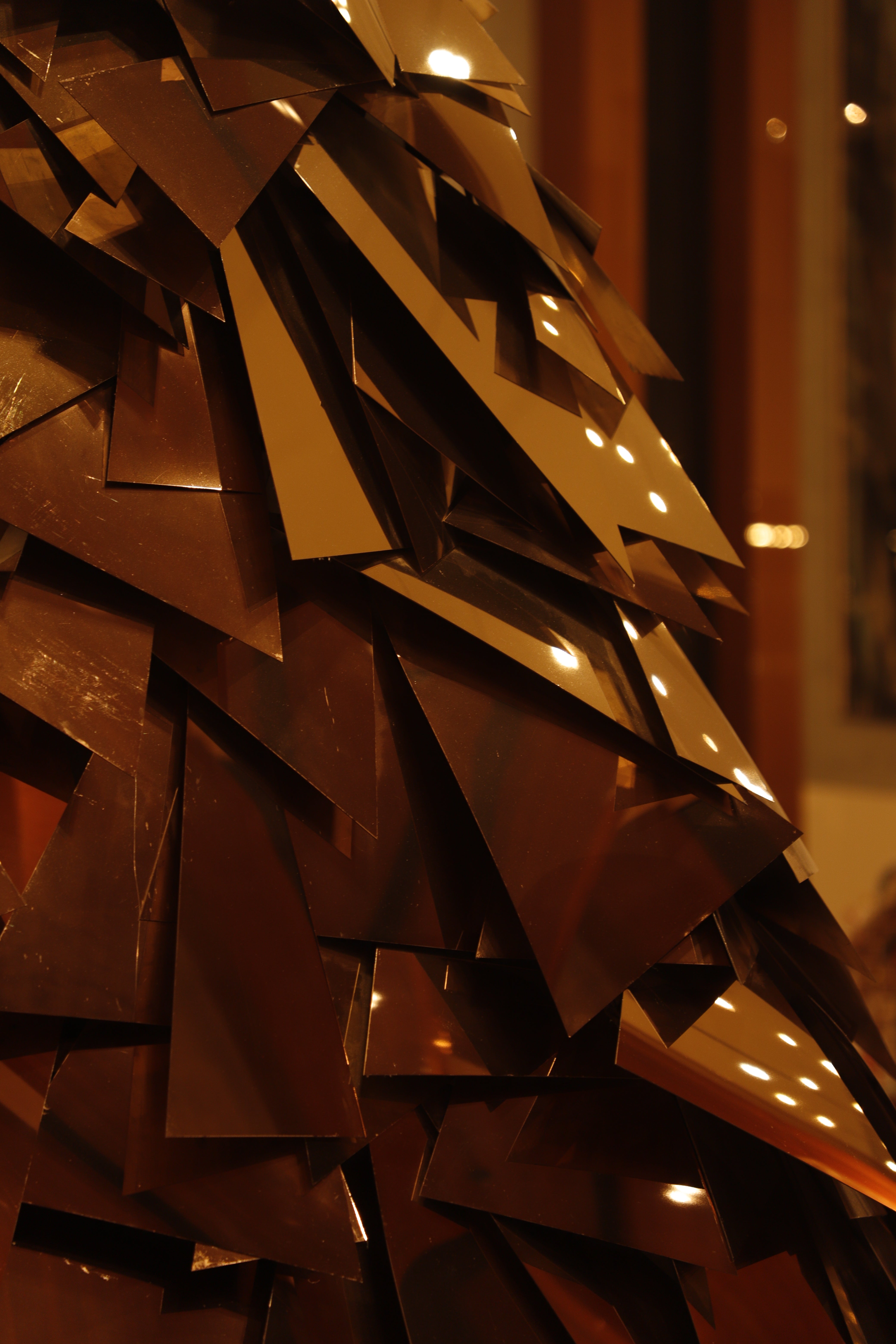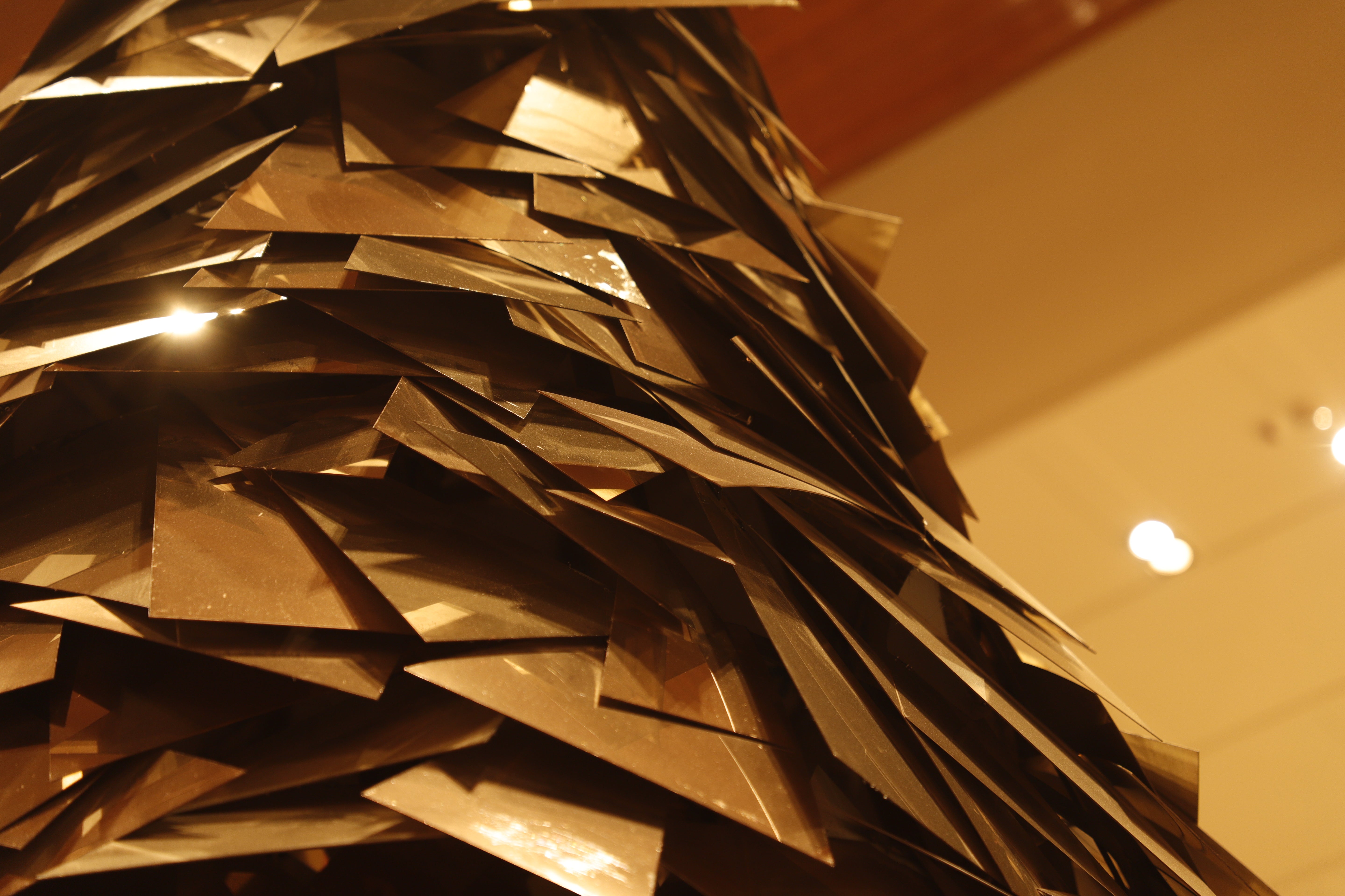 Crafted from meticulously layered stainless steel sheets, this avant-garde sculpture takes the form of a gracefully ascending cone, seamlessly blending ndustrial precision with artistic elegance.