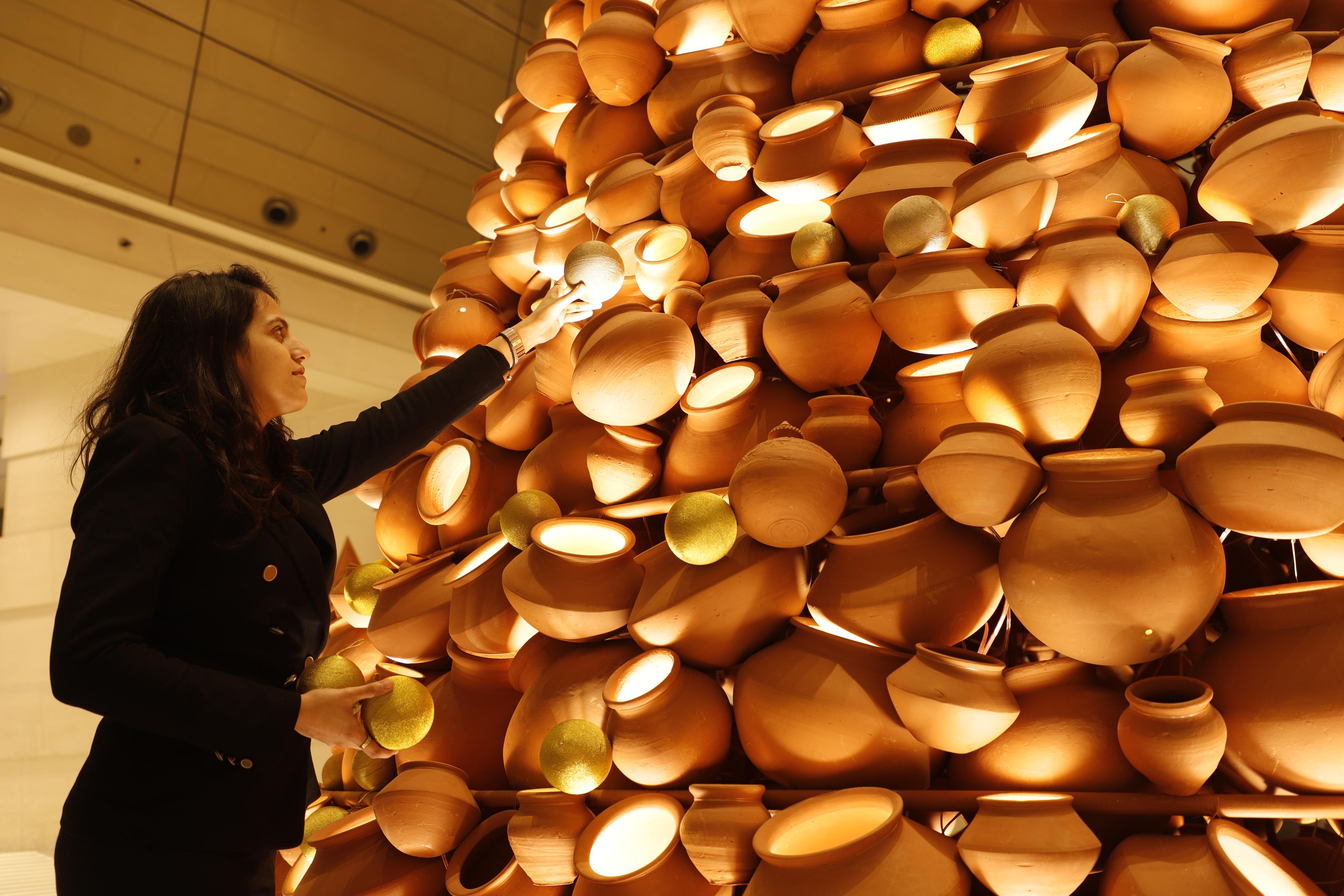 A concept that embraces sustainability and creativity. Unlike traditional Christmas trees, Terra-Tree is crafted entirely from terracotta pots, providing a unique and charming alternative that aligns with the principles of environmental consciousness. Sound: Complementing the inspiration, the percussion instrument ‘Ghatam’ was incorporated with the live singing. Taste: Matkas filled with chocolates were distributed.