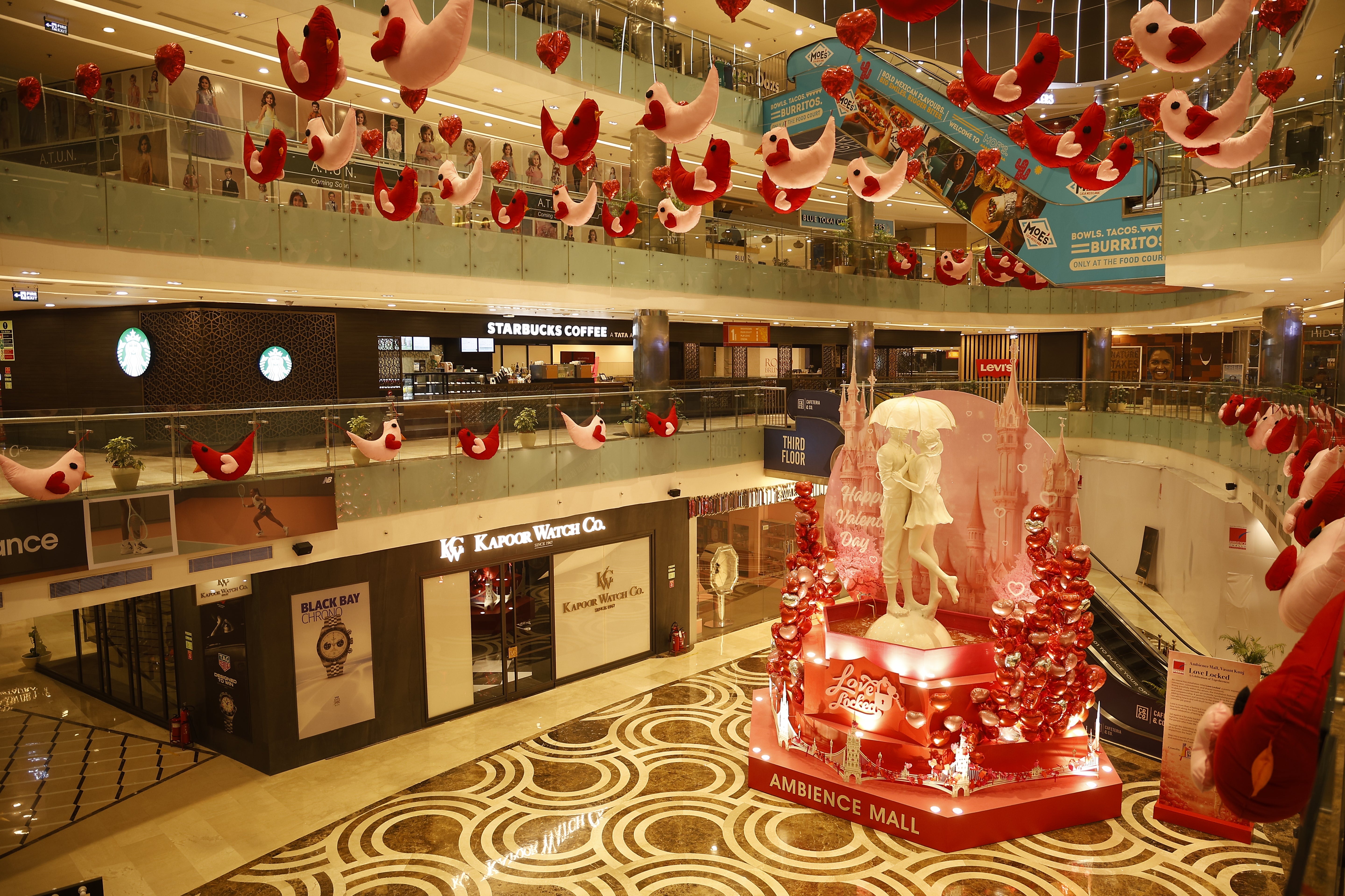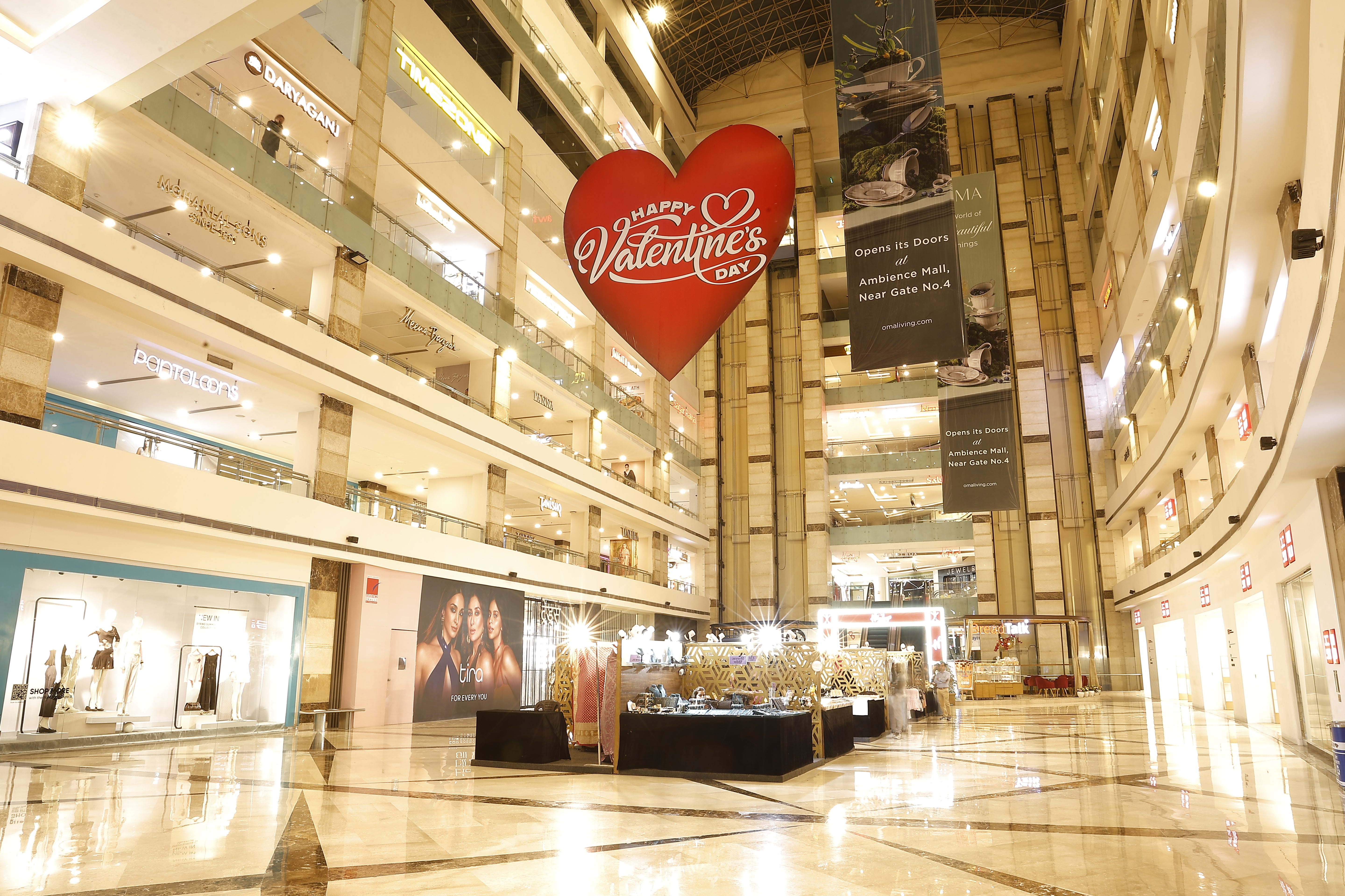 The setup transforms the mall atrium into a vibrant celebration zone, spreading joy, warmth, and the spirit of togetherness.